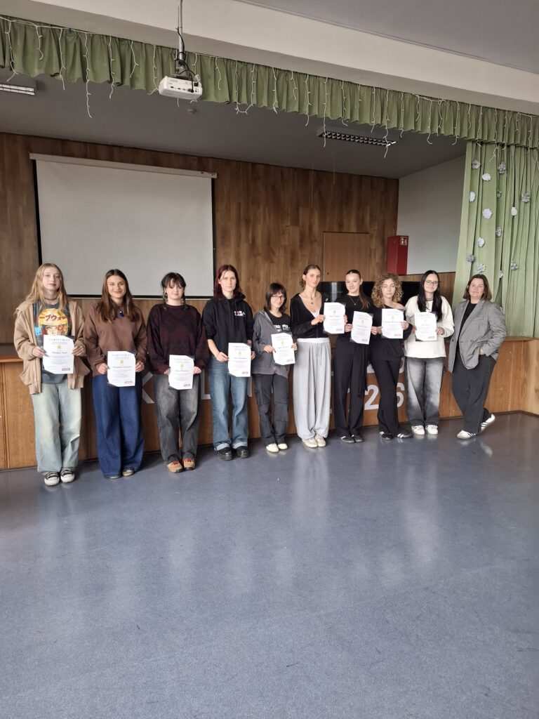 Uczestniczki projektu odebrały certyfikaty z rąk Pani Barbary Stolorz – menadżerki projektów i produktów z branży IT, która wcześniej wygłosiła interesującywykład na temat zarządzania projektami IT.