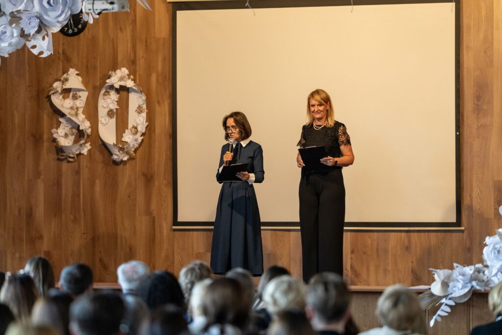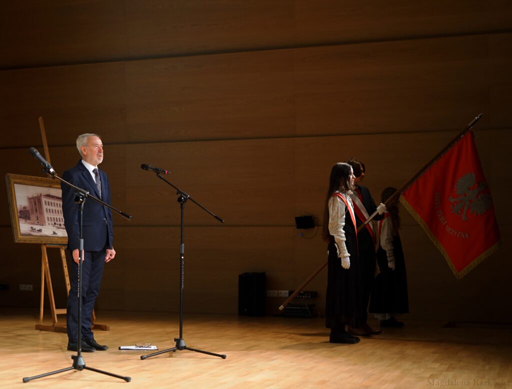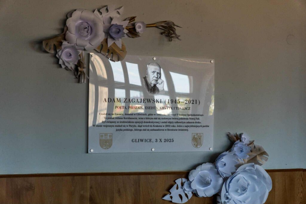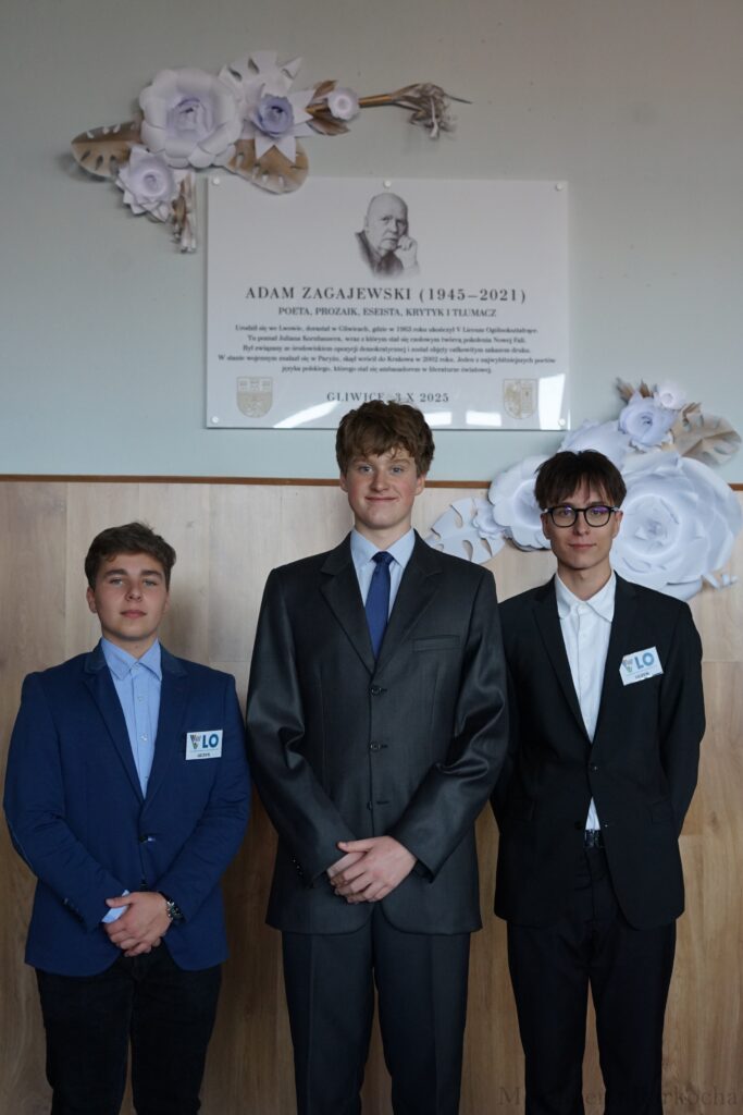 Kolejne elementy jubileuszu świętowaliśmy już w murach VLO. Po miłym i wyśmienitym poczęstunku uczestniczyliśmy w nadaniu szkolnej auli imienia znakomitego poety – absolwenta VLO – Adama Zagajewskiego.