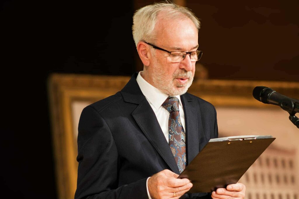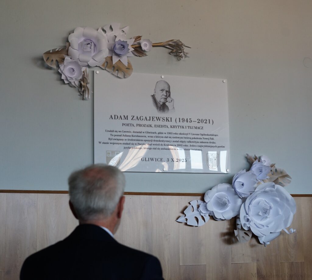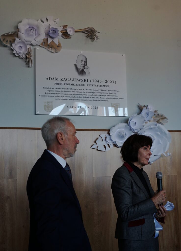 Wysłuchaliśmy zarejestrowanego w 2017 r. w Asturii (Hiszpania) jego przemówienia, które wygłosił w trakcie wręczenia mu Nagrody Księżnej Asturii w dziedzinie literatury. Następnie pan Dyrektor Florian Brom wraz z panią Mają Zagajewską (wdową po poecie) odsłonili okolicznościową tablicę pamiątkową. Ta część obchodów zakończyła się degustacją olbrzymiego tortu ufundowanego panią Małgorzatę Donner.