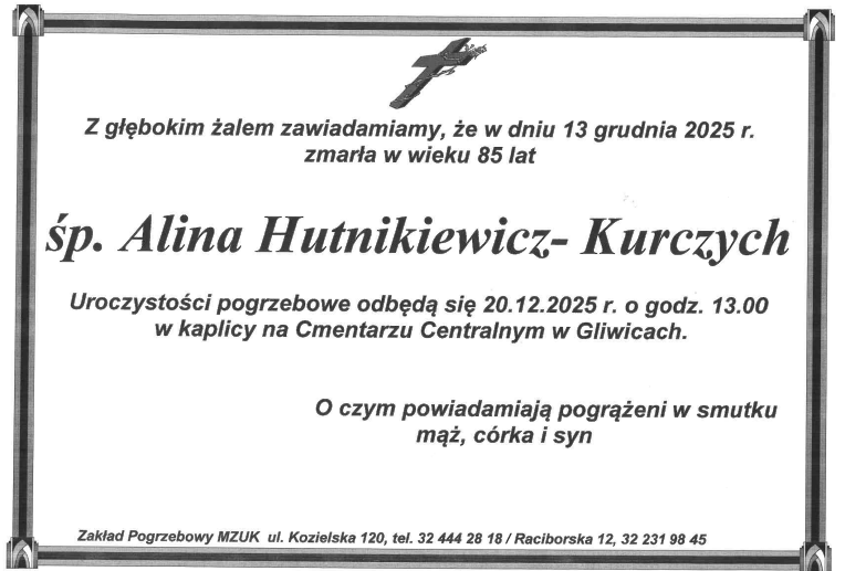 Msza za duszę zmarłej odbędzie się w Kościele Wniebowzięcia Najświętszej Marii Panny w Gliwicach przy ul. Kozielskiej o godz. 12:00.