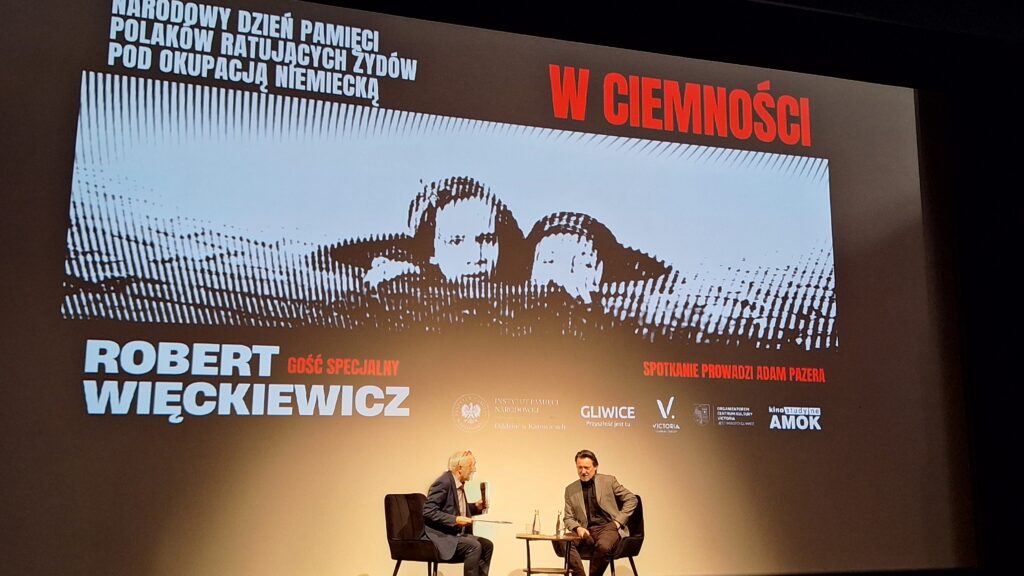 w spotkaniu z Robertem Więckiewiczem, odtwórcą głównej roli Leopolda Sochy. Opowiedziana w ekranizacji Agnieszki Holland historia wydarzyła się we Lwowie i swoje zakończenie znalazła w Gliwicach. Podczas II wojny światowej Leopold Socha i Stefan Wróblewski pracowali jako lwowscy kanalarze. Gdy właśnie w kanałach natknęli się na grupę Żydów szukających ratunku w momencie likwidacji getta, podjęli ryzykowną decyzję o udzieleniu im pomocy. Przez czternaście miesięcy, przy wsparciu swoich żon – Magdaleny Sochy