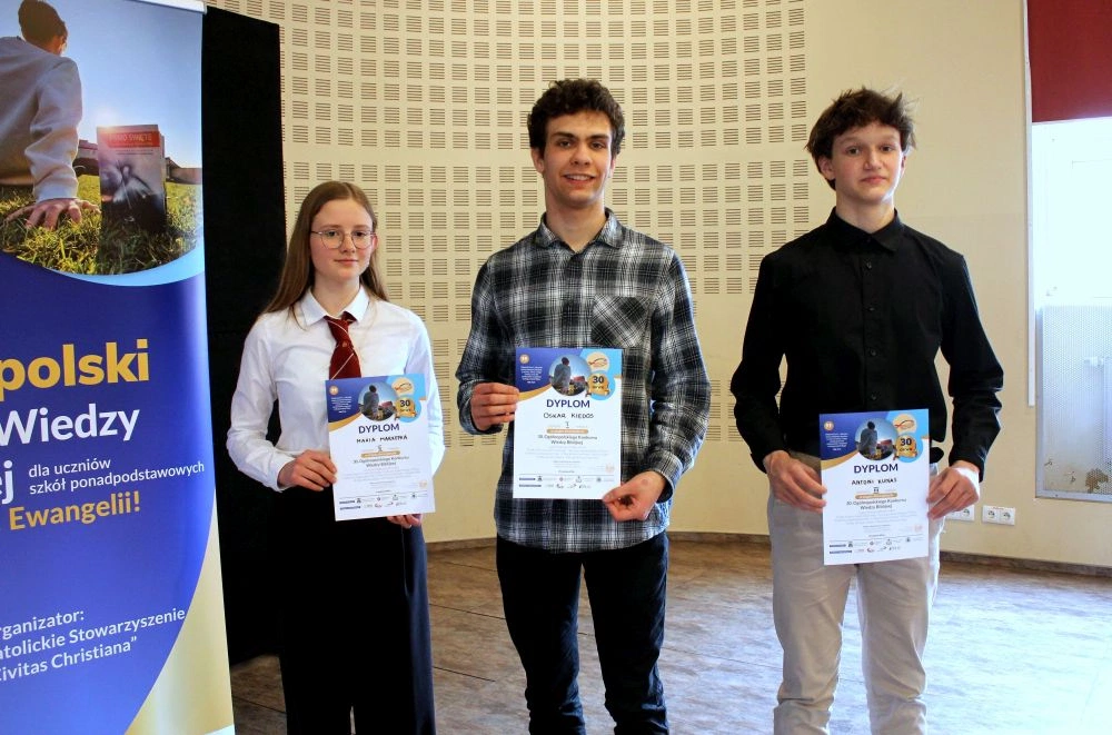 15. kwietnia br. trzej uczniowie VLO – Antoni Kunas z kl. 1a oraz Adam Opała i Marek Guzek z kl. 2a – brali udział w 2. etapie Ogólnopolskiego Konkursu Wiedzy Biblijnej.